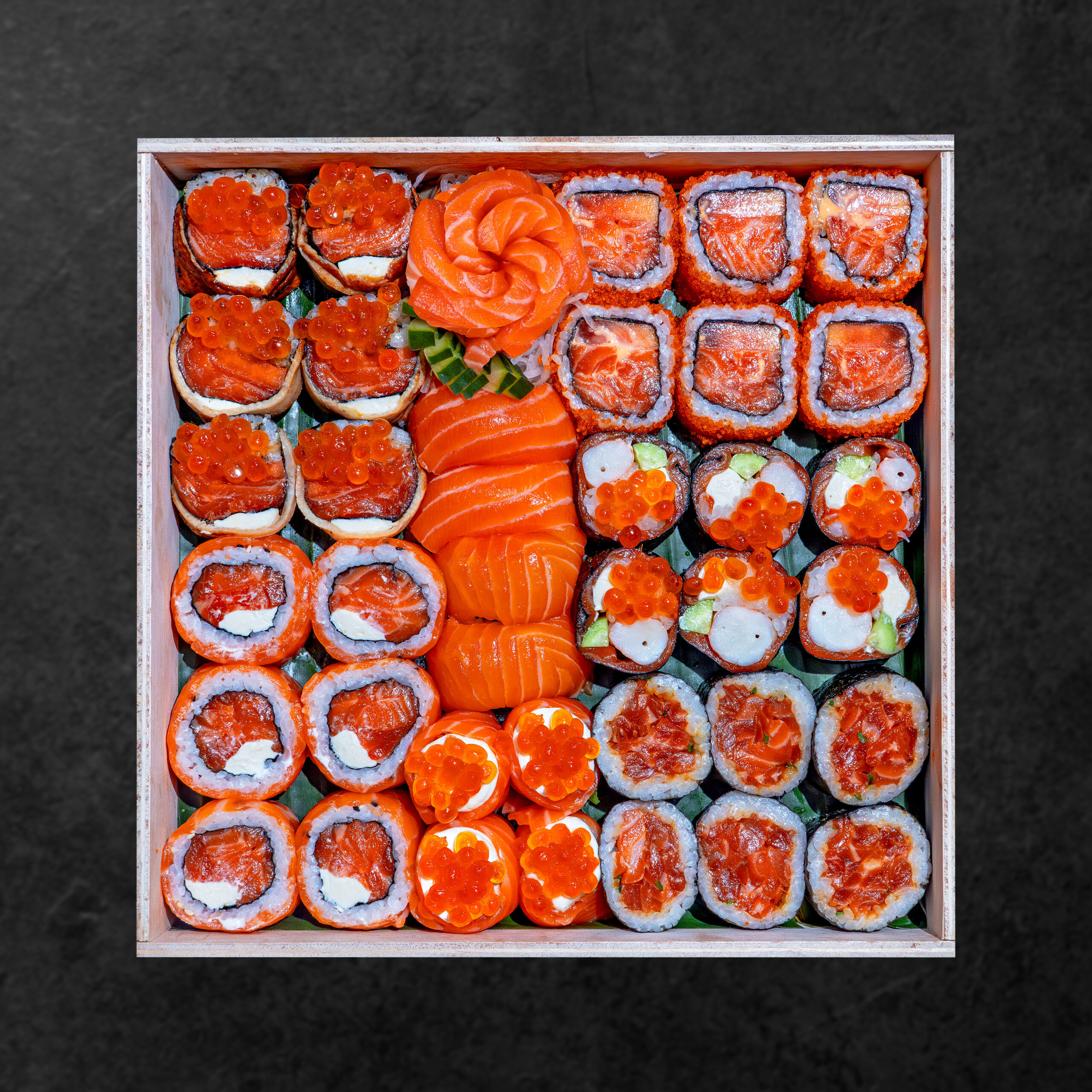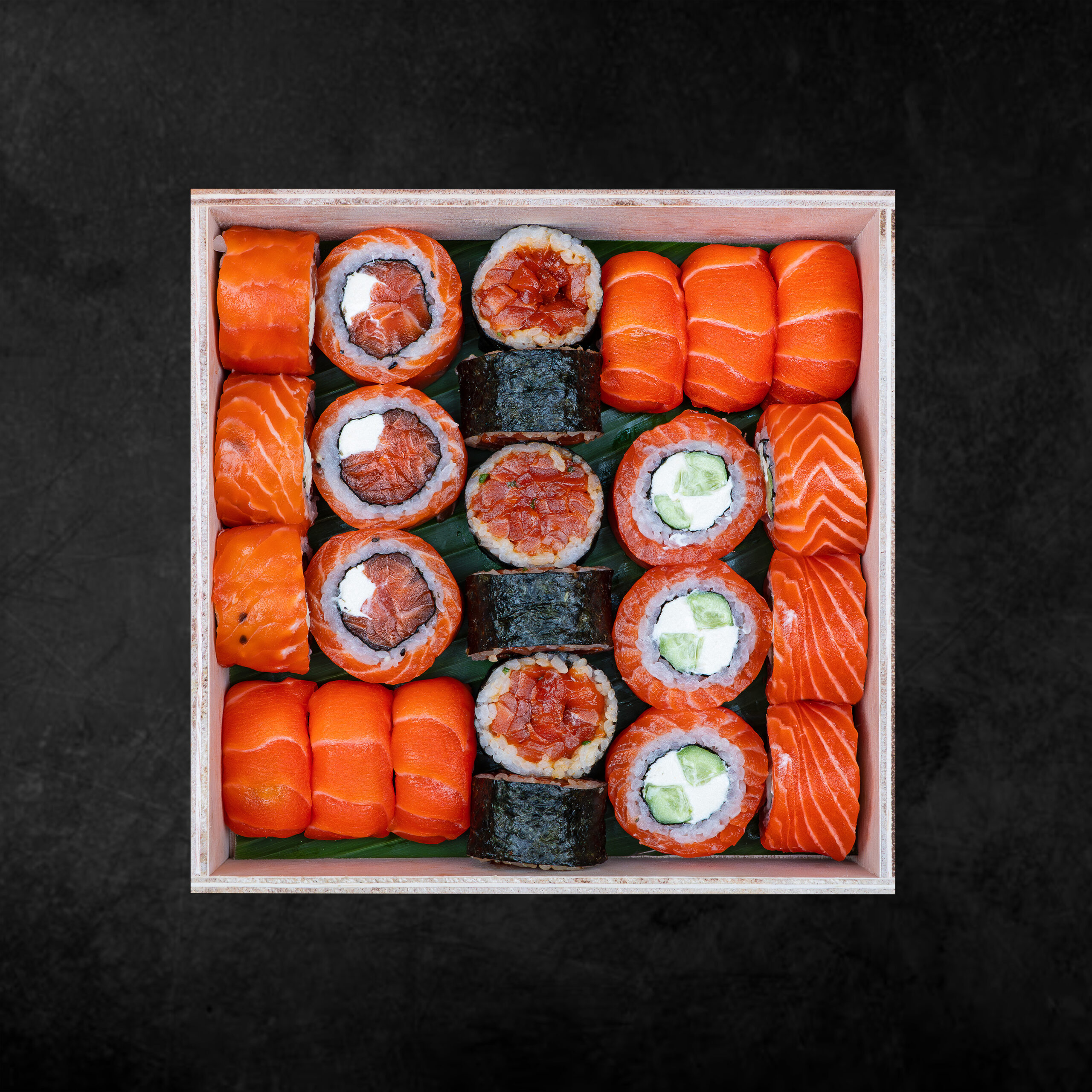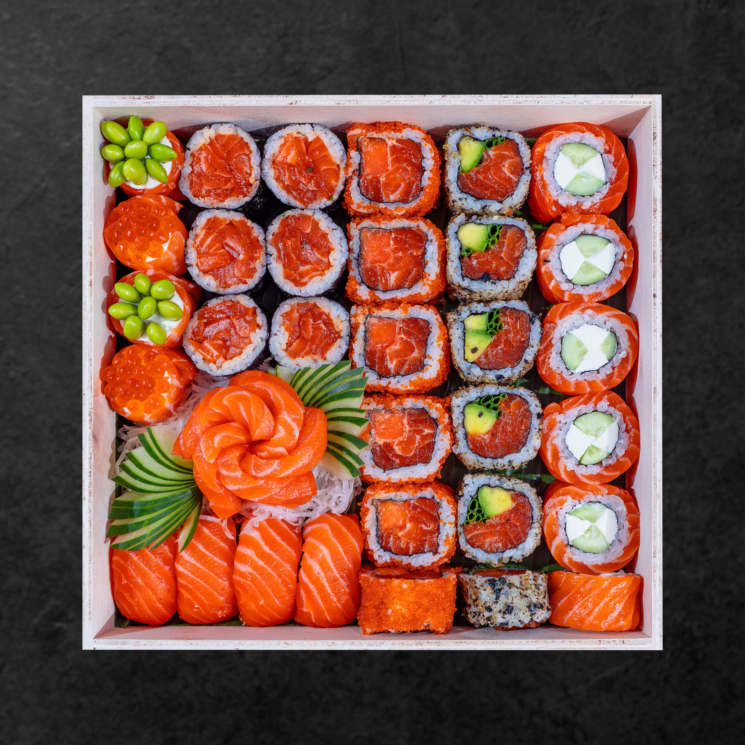 Philadelphia Classic, Philadelphia Salmon, Maki Roll, Salmon Nigiri, Salmon Ball (already include condiment truffle edamame, soy souce, pickle ginger, wasabi)